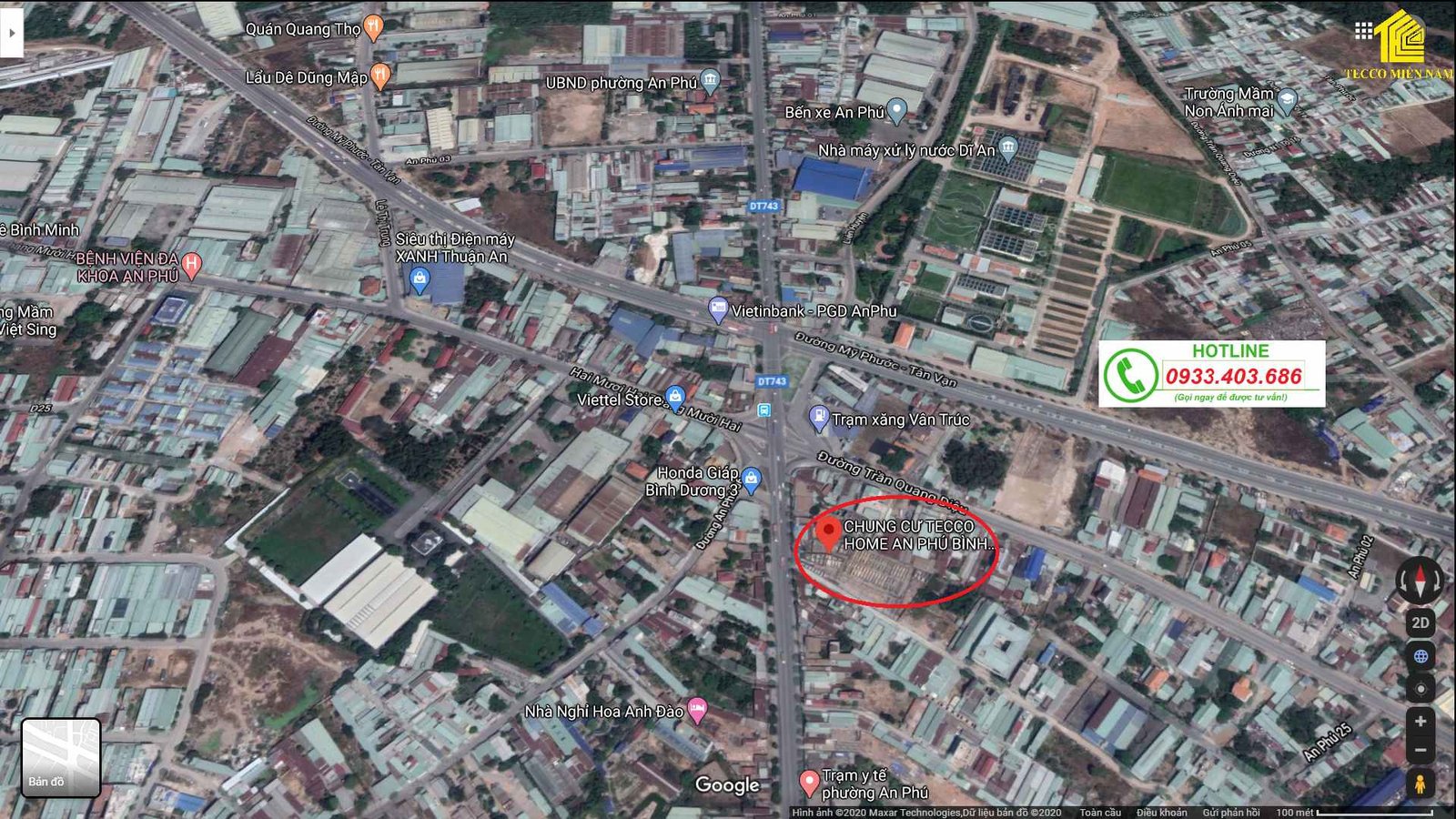 _V trí: Chung cư Tecco Home An Phú sắp mở bán tọa lạc tại 2 mặt tiền đường, nằm ngay mặt tiền đường ĐT 743 và đường dân cư hiện lộ giới 12m. Thuộc phường An Phú, Thành Phố Thuận An, tỉnh Bình Dương.